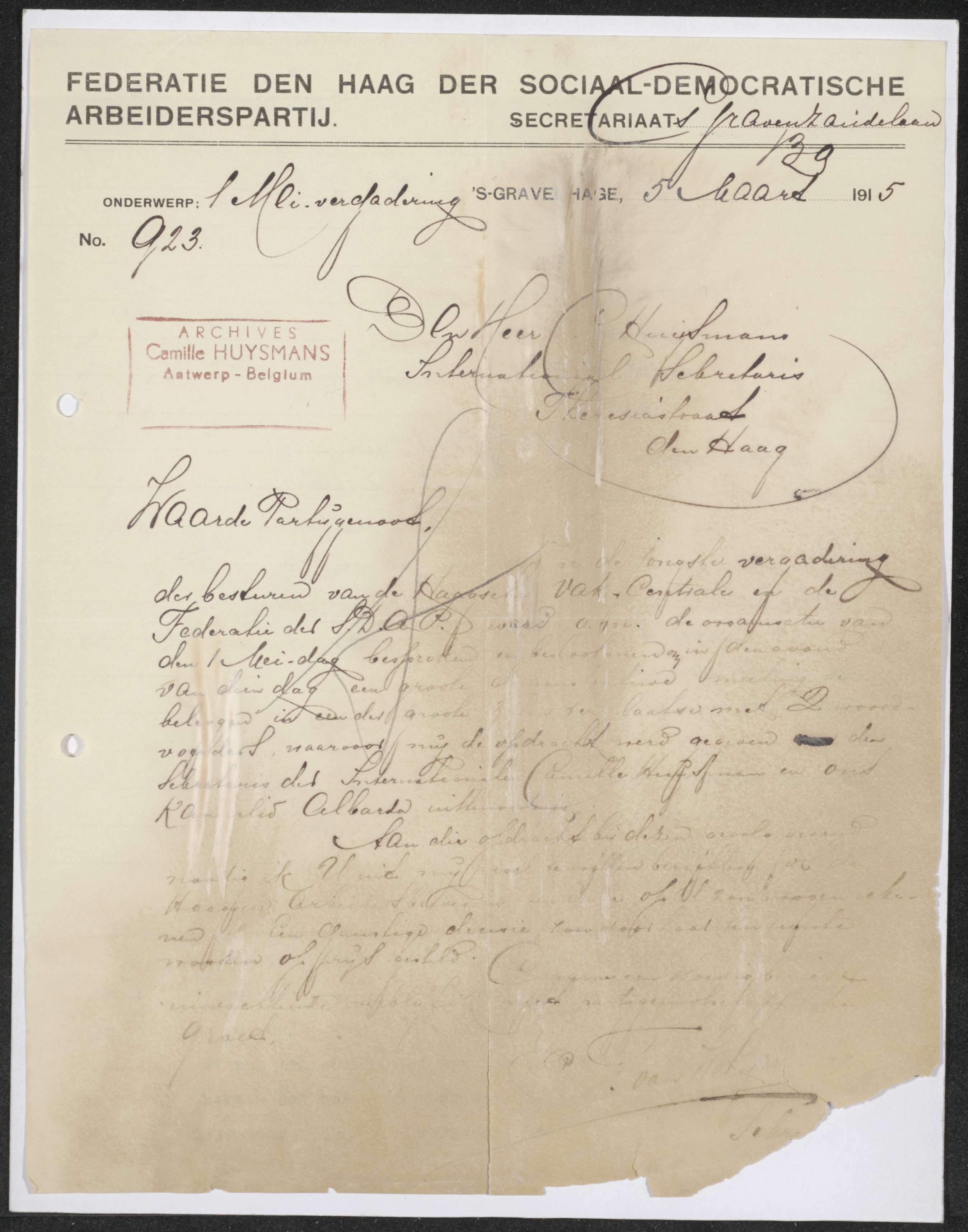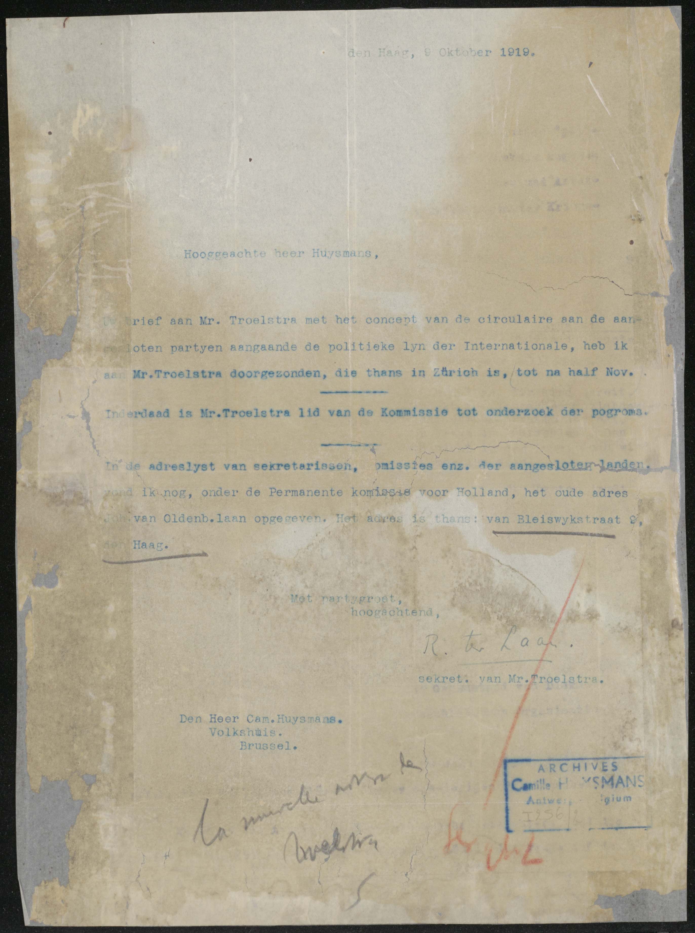 Naar het archief van Camille Huysmans in de onlinecatalogus