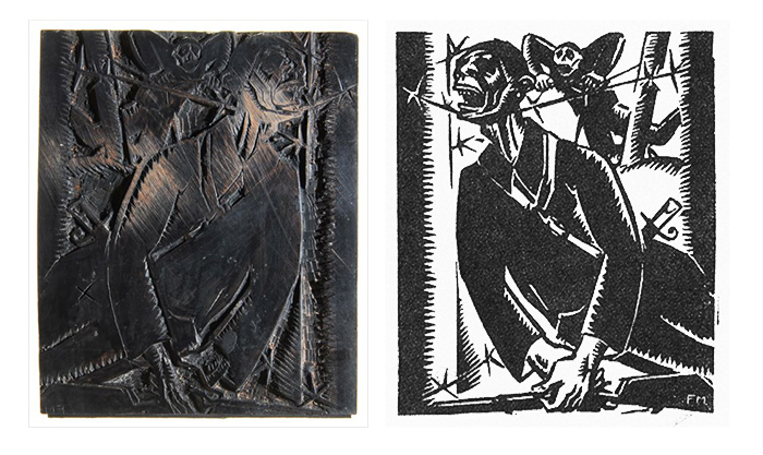 Enkele jaren geleden werd heel toevallig een aantal originele houtblokken van Frans Masereel teruggevonden in de kelder van een uitgeverij in Zürich. Door toedoen van Joris van Parys, auteur van de uitmuntende biografie Masereel, bekroond met de Gouden Uil voor non-fictie, werden ze in 2003 aan Amsab-ISG overgedragen. De collectie telt een 300-tal houtblokken en evenveel galvano’s (koperen replica’s bestemd voor het drukken van grote oplagen).