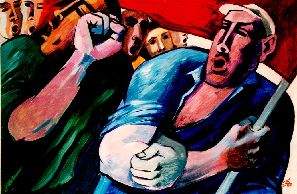 Louis Deltour (1927–1998) was een Waalse schilder en geëngageerd kunstenaar die zich zijn hele leven inzette voor sociale en politieke thema’s. Vanuit een diepe verbondenheid met het arbeidersmilieu maakte hij monumentale, figuratieve kunst over strijd, solidariteit en dagelijks leven, ver weg van de commerciële kunstwereld. Als medeoprichter van Forces Murales en later Art et travail koos hij bewust voor publieke plekken zoals volkshuizen en scholen om zijn werk toegankelijk te maken voor iedereen.