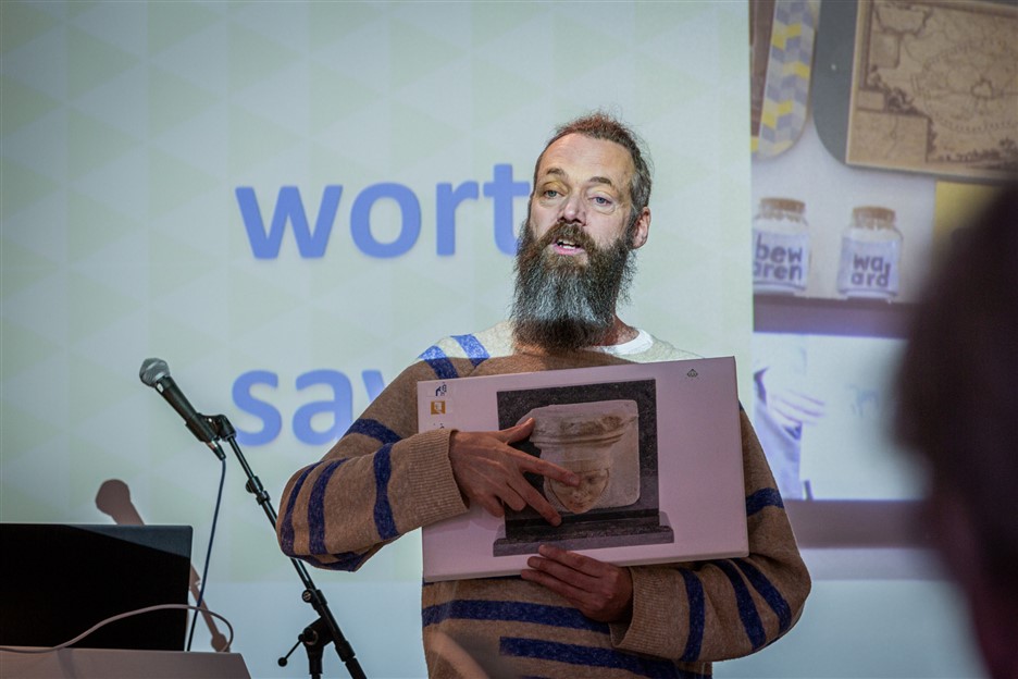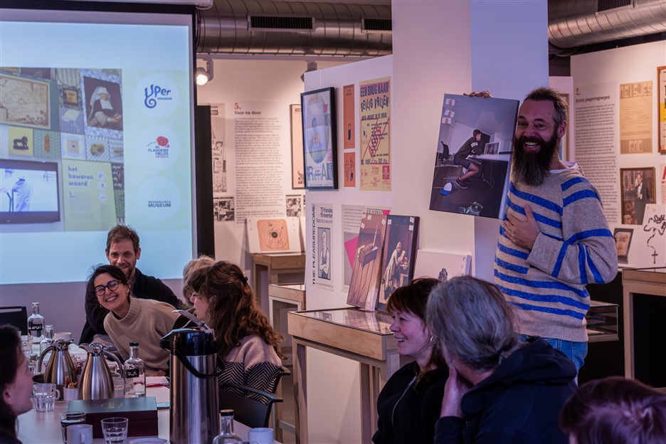 Op de bezoekdag aan Amsab-ISG gaven naast Martine Vermandere nog twee inspirerende sprekers workshops. Claire Wellesley-Smith, werkzaam met vluchtelingen en asielzoekers in het Engelse Bradford, verkende de link tussen gezondheid, welzijn en erfgoed via textielactiviteiten. Wouter Sinaeve van het In Flanders Fields Museum gaf een levendige sessie over de subjectiviteit van het waarderen van erfgoed. Tot slot gaf publieksmedewerker Nina Moens een inkijk in de werking van Amsab-ISG.