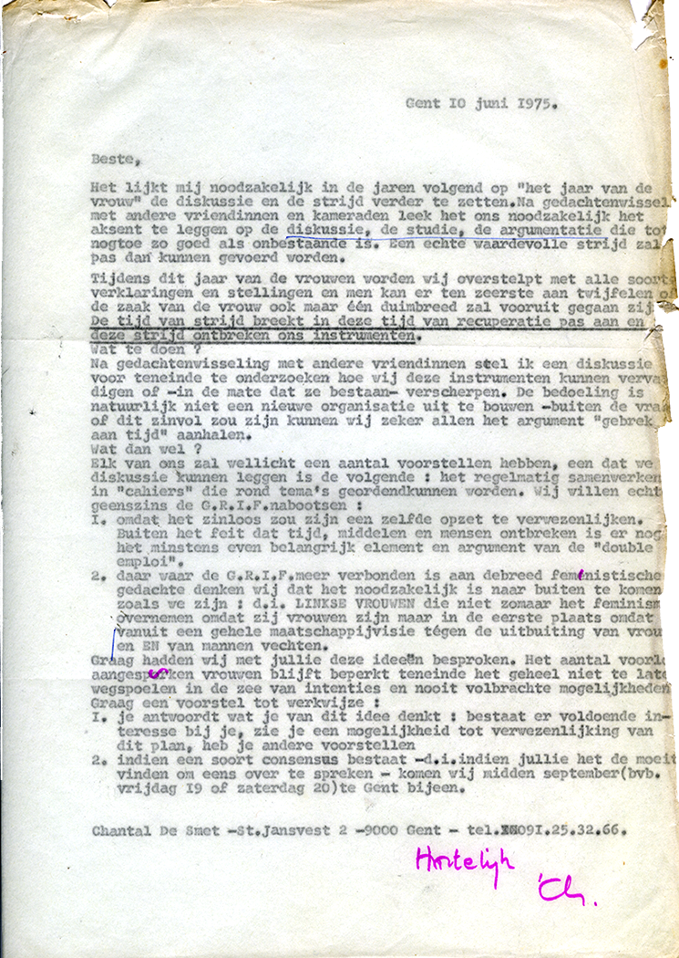 Zo begon Chantal De Smet Verloren brood : je huishouden, je leven?, het eerste nummer van de LeF-cahiers. LeF stond voor Links en Feministisch en was de naam van een collectief dat in totaal negen thema-cahiers zou uitgeven. Chantal De Smet, eerder één van de drijvende krachten achter Dolle Mina Gent was er de geestelijke moeder van. Ze broedde op een Vlaams alternatief voor de Cahiers du GRIF, een feministisch tijdschrift dat sinds 1973 in Franstalig België (en ver daarbuiten) een stevige reputatie had als plaats van feministische kennisproductie. “Elke beweging, elke ideologische stroming, heeft immers nood aan een stuk theorievorming, aan een eigen publicistische geschiedenis”, stelde Chantal De Smet in de brief waarmee ze in juni 1975 feministische geestesgenoten warm maakte voor het project.